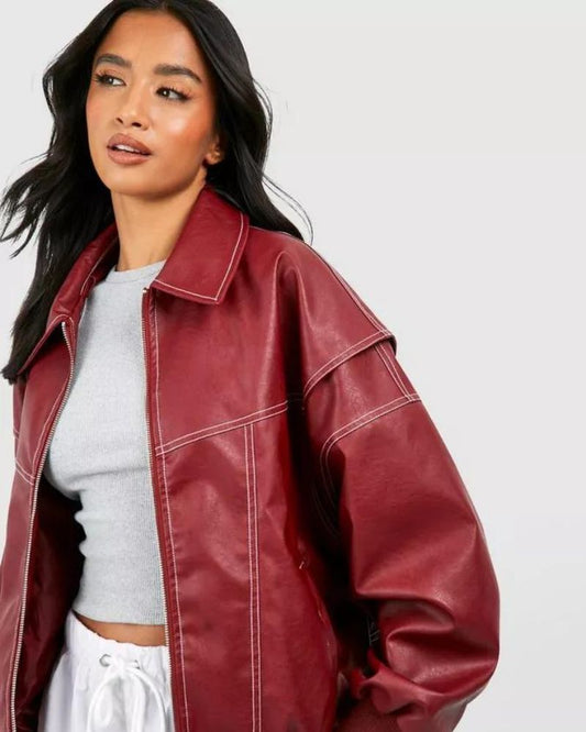 Schicke leder bomberjacke für frauen - Khalil