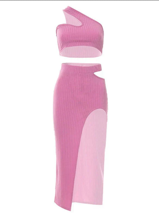 Ibrahimu | einfarbiges crop-top mit wellenartigem design und mehrlagigem rock-set