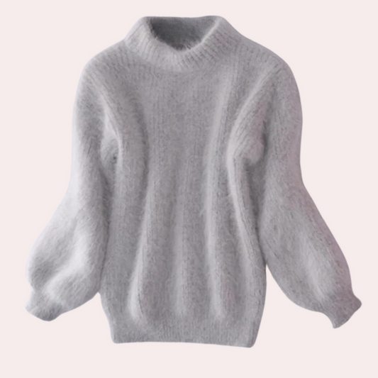 Schicker pullover mit tropfenschulter, laternenärmeln und rollkragen