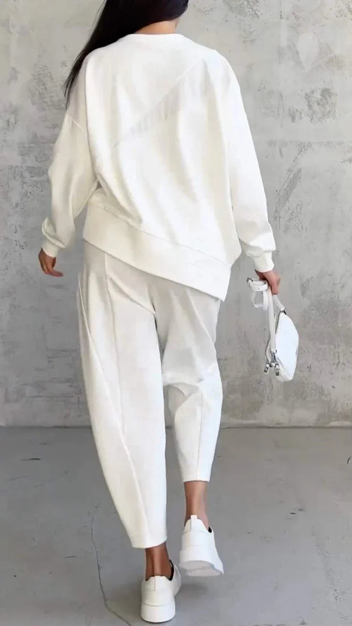 Babs | Zweiteiliges Set mit Rundhalsausschnitt und langen Ärmeln: Stilvolles und bequemes Set, bestehend aus einem Oberteil mit Rundhalsausschnitt und langen Ärmeln. Ideal für einen lässigen, aber modischen Look, perfekt für den Alltag.